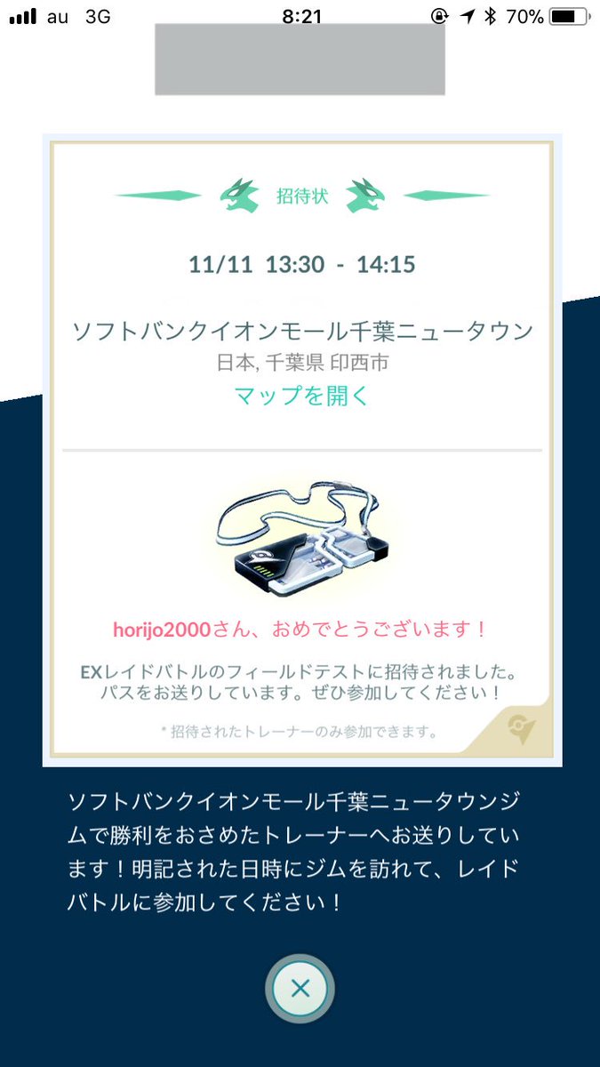 ポケモンgo Exレイドバトルの招待状キター